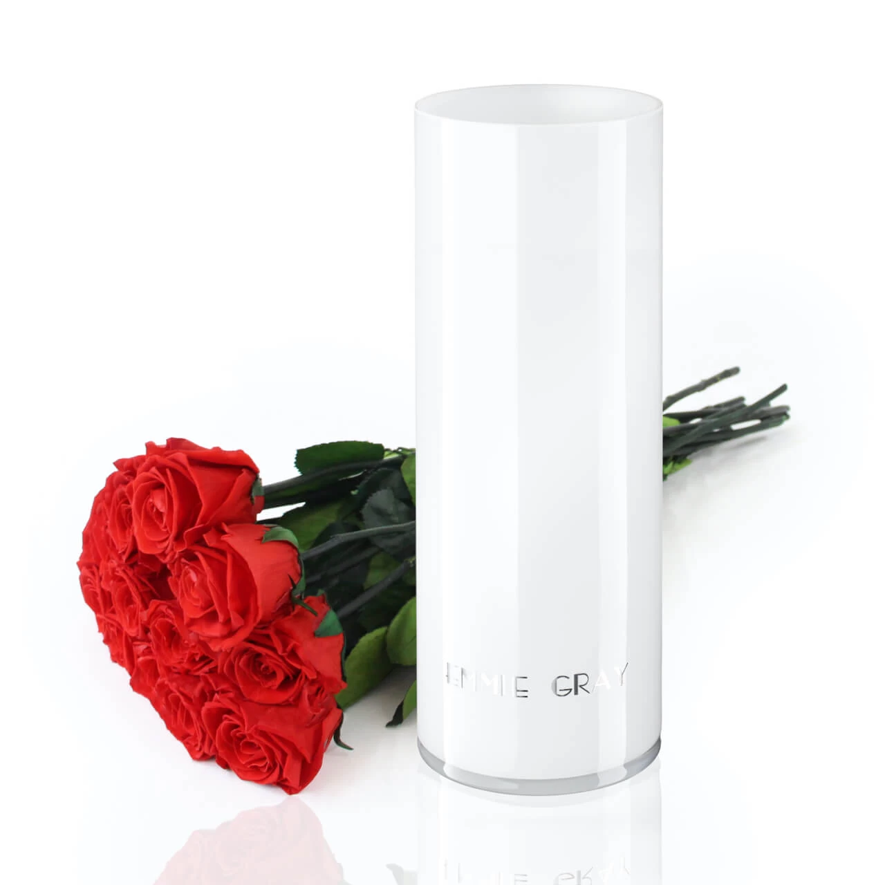 Die EMMIE GRAY Glasvase dient als die ideale Ergänzung für Ihre langstieligen Infinity Rosen oder jeden beliebigen Strauß Ihrer Wahl.
