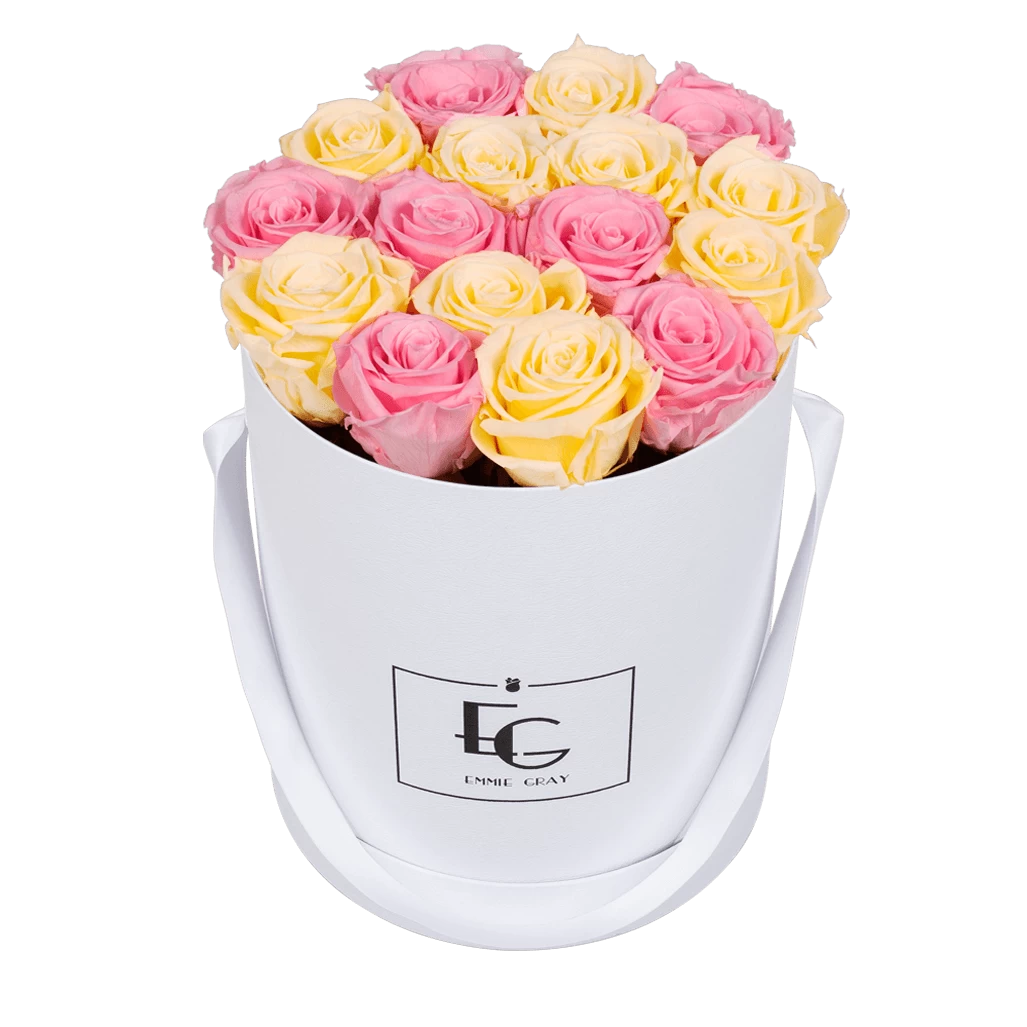 Unsere Rosenbox in mittlerer Größe ist ein echter Allrounder. Feiern Sie mit ihr Geburtstage und Hochzeiten oder machen Sie einem lieben Menschen einfach so ein Geschenk, das garantiert in jedes Interieur passt. Das handgesteckte Bouquet besteht aus großköpfigen Qualitätsrosen, die ausschließlich auf Ihre Bestellung hin eingekauft werden.