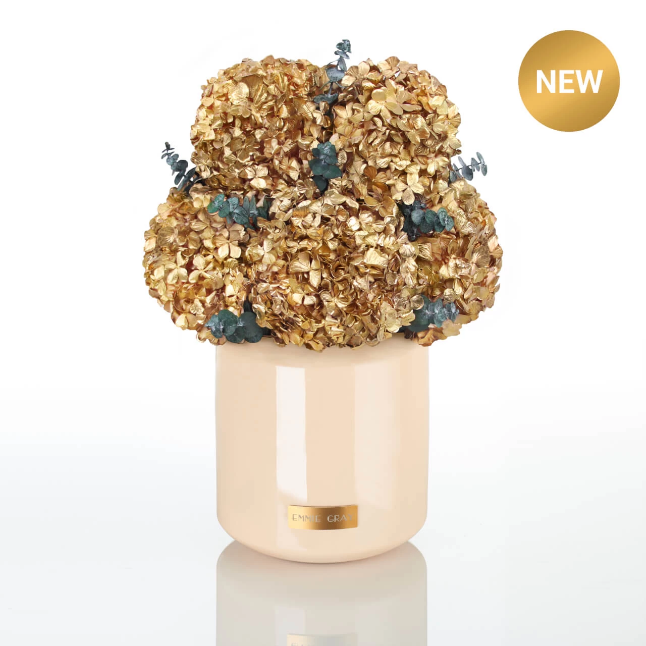 In der Metallic Signature Collection arrangieren wir die schönsten Hortensien in ihrer vollen Blüte als ganze Dolden von Hand zu pompösen Bouquets.