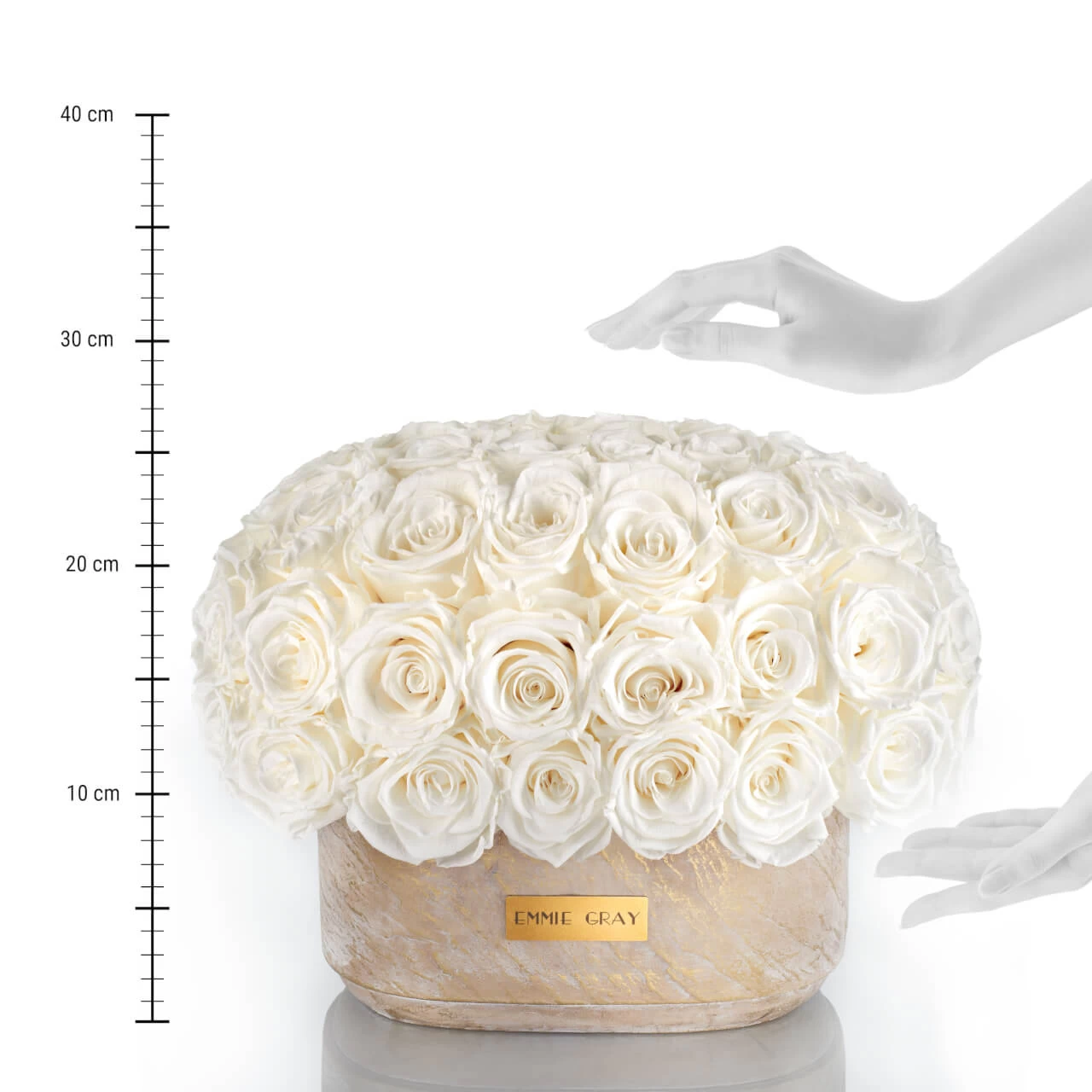 Die natürlichen Rosen unserer Splendid Infinity Collection werden mithilfe eines besonderen Verfahrens konserviert und bleiben ein bis drei Jahre haltbar. Die prachtvollen, handgefertigten Arrangements verzaubern durch ihr farbenfrohes Blühen in klassischer Rundung.