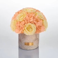 Die natürlichen Rosen und Hortensien unserer Splendid Hydrangea Infinity Collection werden mithilfe eines besonderen Verfahrens konserviert und bleiben ein bis drei Jahre haltbar. Die prachtvollen, handgefertigten Arrangements verzaubern durch ihr farbenfrohes Blühen in klassischer Rundung.