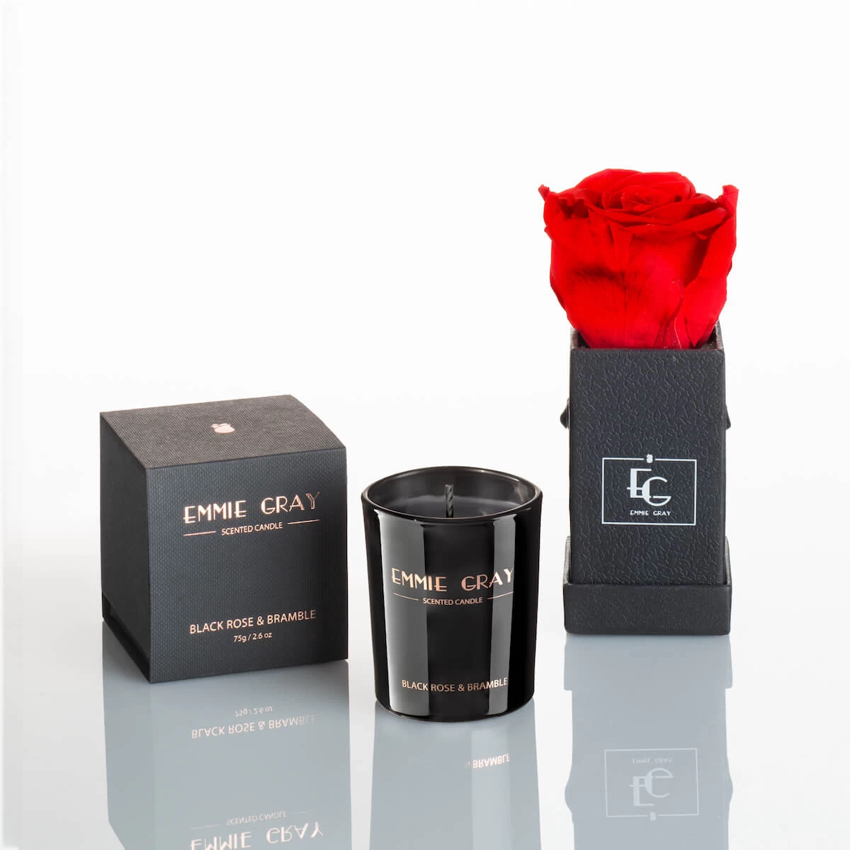 Dieses Gift Set besticht mit seiner klassisch eleganten Zusammenstellung aus einer einzelnen roten Infinity Rose und dem holzig-süßen Duft der Black Rose & Bramble Scented Candle. Für allgegenwärtige Eleganz und eine Überraschung für jeden besonderen Anlass.