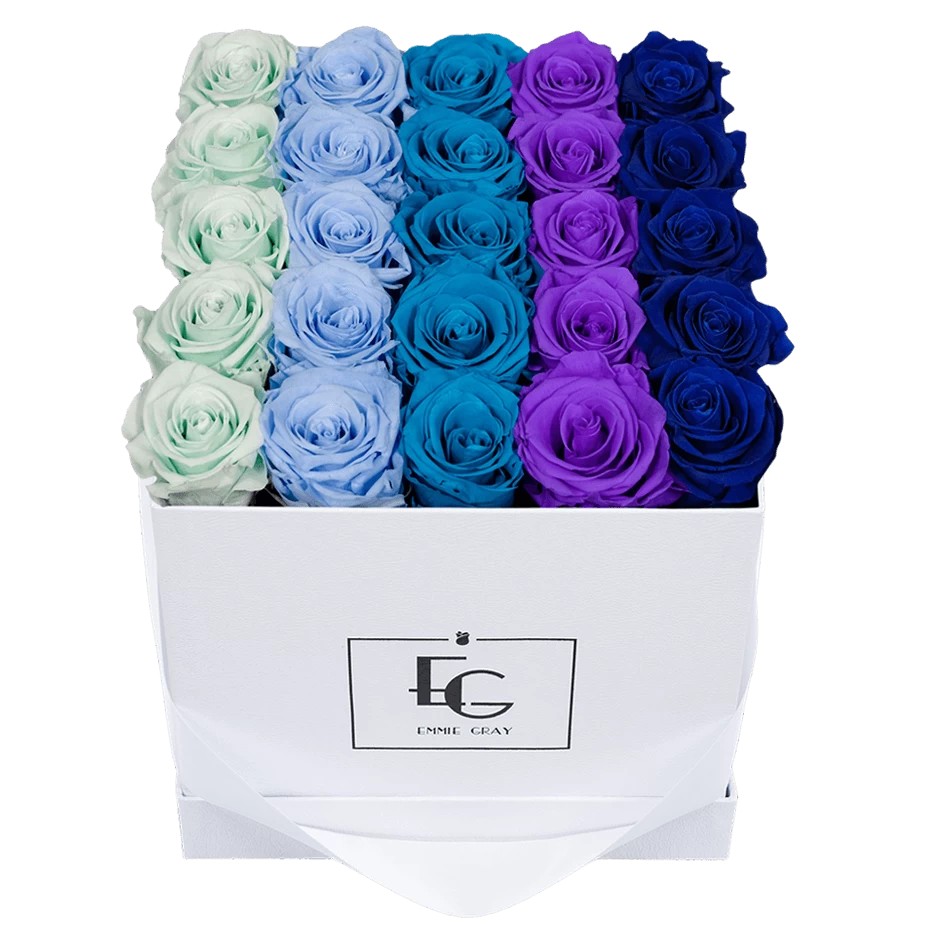 Unsere Rosenbox in mittlerer Größe ist ein echter Allrounder. Feiern Sie mit ihr Geburtstage und Hochzeiten oder machen Sie einem lieben Menschen einfach so ein Geschenk, das garantiert in jedes Interieur passt. Das handgesteckte Bouquet besteht aus großköpfigen Qualitätsrosen, die ausschließlich auf Ihre Bestellung hin eingekauft werden.