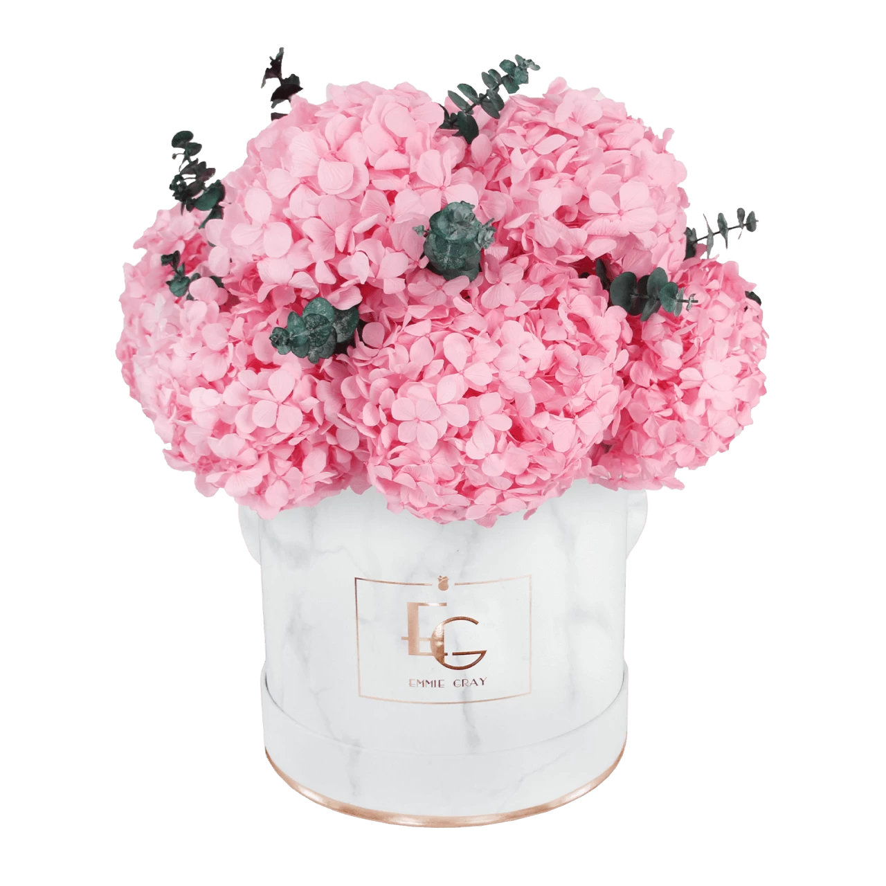 Die natürlichen Hortensien unserer Signature Hydrangea Infinity Collection werden mithilfe eines besonderen Verfahrens konserviert und bleiben ein bis drei Jahre haltbar. Die prachtvollen Arrangements verzaubern durch ihr farbenfrohes Blühen in klassischer Rundung.