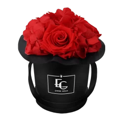 Die natürlichen Rosen und Hortensien unserer Splendid Hydrangea Infinity Collection werden mithilfe eines besonderen Verfahrens konserviert und bleiben ein bis drei Jahre haltbar. Die prachtvollen Arrangements verzaubern durch ihr farbenfrohes Blühen in klassischer Rundung.
