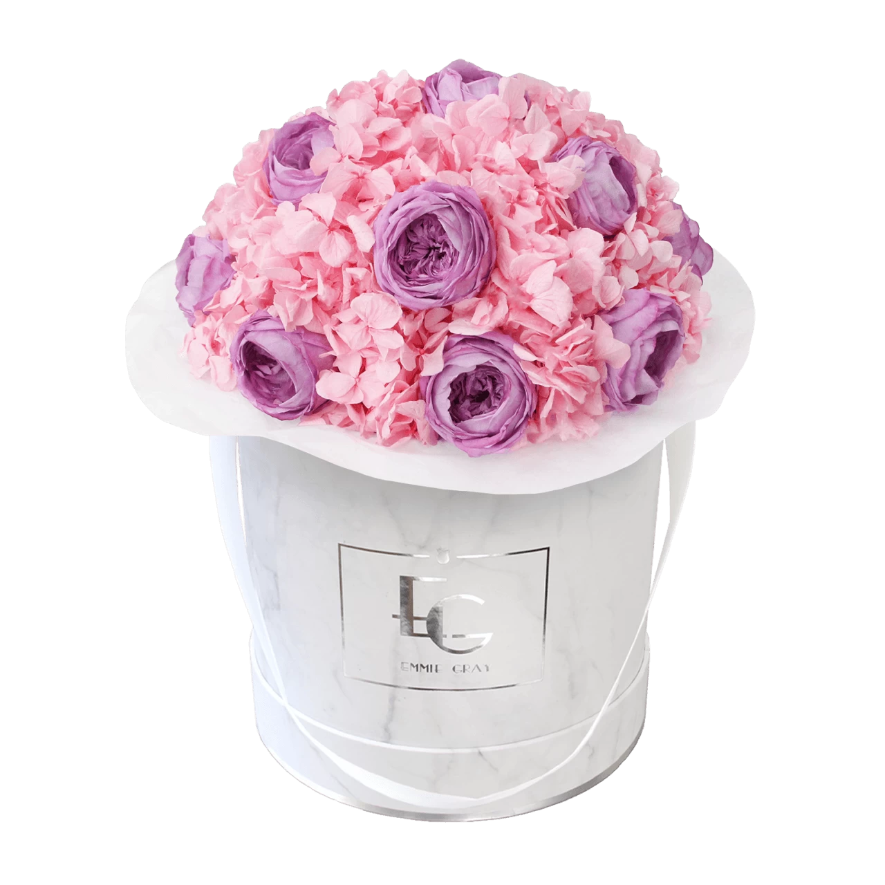 Die natürlichen Pfingstrosen und Hortensien unserer Splendid Peony Infinity Collection werden mithilfe eines besonderen Verfahrens konserviert und bleiben ein bis drei Jahre haltbar. Die prachtvollen Arrangements verzaubern durch ihr farbenfrohes Blühen in klassischer Rundung.