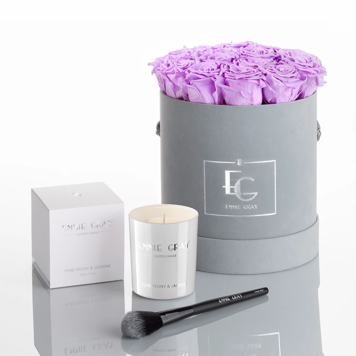 Holen Sie sich mit diesem exklusiven Set den Frühling nach Hause – egal zu welcher Jahreszeit! Das sanfte VELVET SPRING SET überzeugt mit einer frischen und stilvollen Aufmachung. Im Set enthalten ist passend dazu die ausgewählte Duftkerze aus der SCENTED CANDLE COLLECTION die jeden Raum mit einem luxuriösen Pfingstrosen Duft umhüllt. Als besonderes Add-On wird der CLASSIC BRUSH beigelegt, der jedes Bouquet jahrelang erstrahlen lässt.